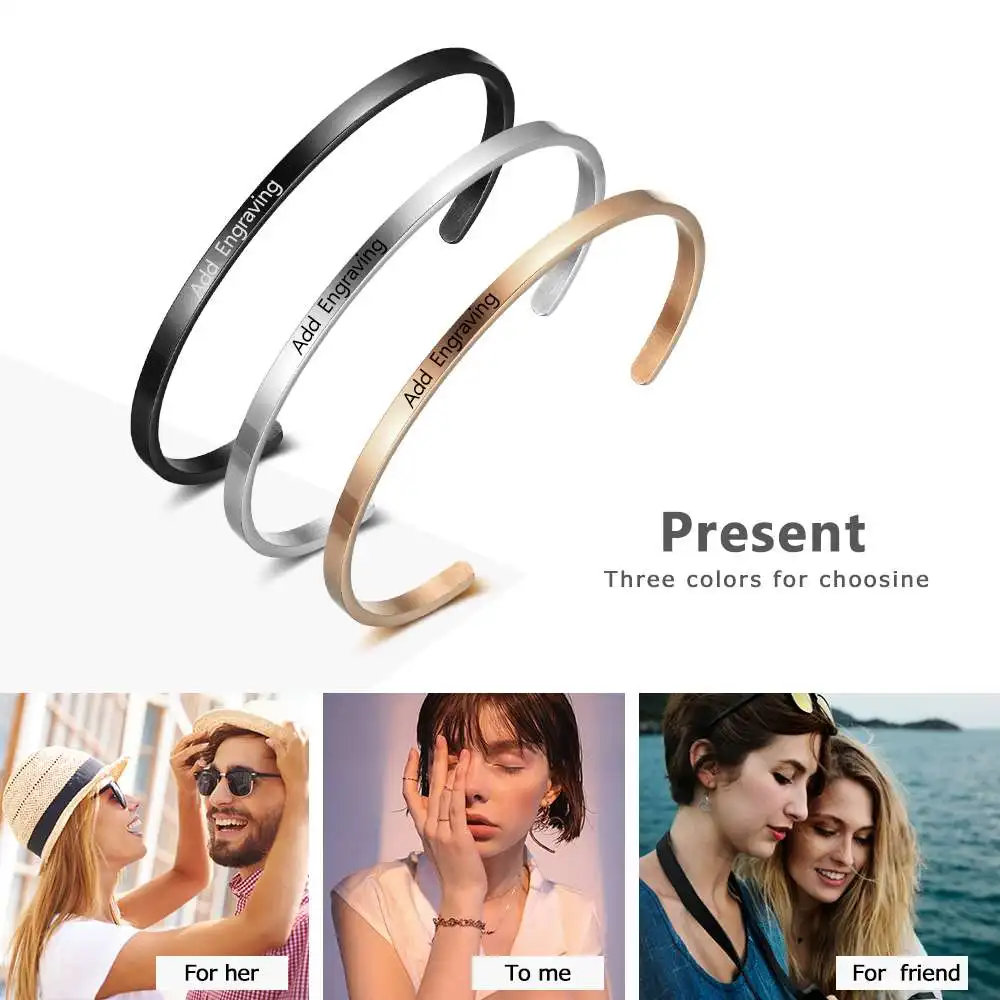 Promo Personalized Gift Friendship Cuff Bracelets for Women Engrave Name Stainless Steel ID Bracelets & B